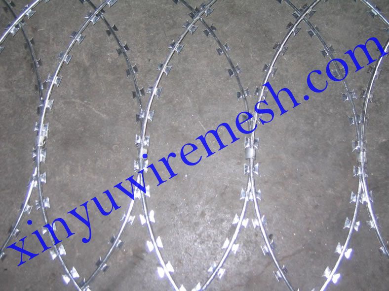 平鋪型刀片刺繩是刀片刺繩的一種新的應(yīng)用方式,它是將單圈式刀片刺繩平壓成板狀,或?qū)杉稳Φ镀汤K壓平后交叉相錯(cuò)使用,外表美觀而且實(shí)用,可與直線型刀片刺繩搭配使用,構(gòu)成下直線上平板的防護(hù)墻,或僅用平鋪型刀片刺繩構(gòu)成防護(hù)墻。主要適用于小區(qū)、倉(cāng)庫(kù)、畜牧廠、農(nóng)場(chǎng)、礦山、監(jiān)獄、國(guó)防重地等。